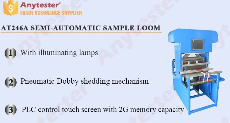 AT246A Semi-automatic Sample Loom is used for sample weaving of all kinds of fabrics, such as cotton, hair, jute, silk, chemical fiber, blending, etc. It consists of shedding mechanism, weft insertion mechanism, beating-up mechanism, take-up mechanism, let-off mechanism, weft selection mechanism, electrical control mechanism, etc. It is widely used in weaving mills, scientific research units, textile institutes and foreign trade companies, etc.