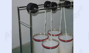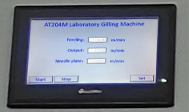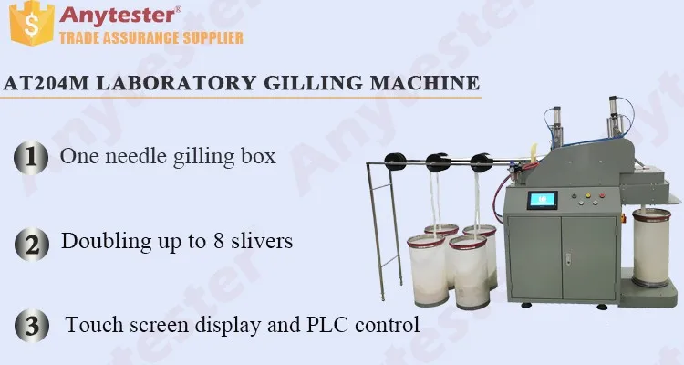 AT204M Laboratory Gilling Machine is one of the most important equipment of long fiber processing system (such as worsted spinning system). In the long fiber spinning system, as the roller carding machine output sliver fiber straight parallelness and evenness does not meet the requirements of spinning, and some fiber still exist "Hook", can't be directly spinning. Especially in the worsted spinning system, if directly use such sliver on combing machine, easy to cause fiber damage, comb needle damage and the production rate reduce. In order to improve the combing process, the gilling machine is frequently used in the former spinning process. Generally, 2 to 3 gilling box are used before the combing, so that the fiber can be parallel to the straight. After combing, 2-4 gilling box are used, it's for improve the uniformity of the sliver. The main task of the needle comb process (gilling machine) is to improve the uniformity of the middle and long fiber in the sliver by the combination of multiple roots and drafts. Moreover, it is used to furtherly improve the parallelness and the degree of separation of the fibers by needle comb and to eliminate the hooks and curl in the same time. It repeated merging and drawing, so that fiber mixing evenly, and stabilize the yarn quality; to remove some small impurities and short hair.