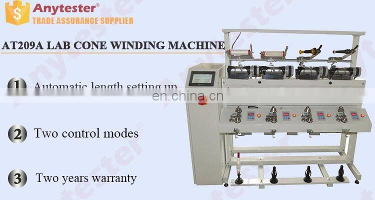 AT209A Lab Cone Winding Machine is a specified equipment in the textile industry as the bridge from the spinning of yarn to the manufacturing of fabric. It is the final process in the spinning of yarn to use tube yarn/cop to make bobbins/cones of large capacity for the manufacturing of fabric. The purpose of winding is to produce bobbin/cones of large capacity and to eliminate faults on yarn. For other purpose of loose winding before dyeing or compact winding after dyeing, please inform us before ordering.