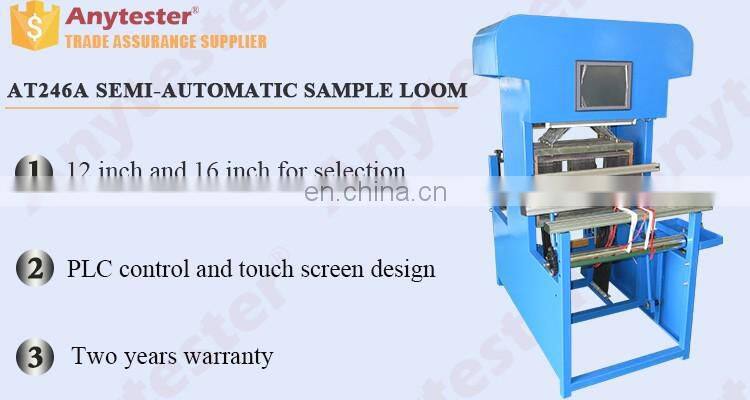 AT246 Series Semi-automatic Sample Loom is used for sample weaving of all kinds of fabrics, such as cotton, hair, jute, silk, chemical fiber, blending, etc. It consists of shedding mechanism, weft insertion mechanism, beating-up mechanism, take-up mechanism, let-off mechanism, weft selection mechanism, electrical control mechanism, etc. It is widely used in weaving mills, scientific research units, textile institutes and foreign trade companies, etc.