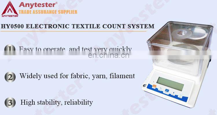 HY0500 Electronic Textile Count System is suit to measure the fabric weight (GSM), and linear density of various yarn. It consists of an accurate electronic balance with a capacity of 510 grams, with a powerful miniature computer. The software automatically calculates the GSM and liner density quickly.