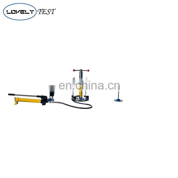 1. Loading system: It is composed of loading plate, jack, high-pressure tubing of manual pump, etc., and the positioning line for jack is engraved on the loading plate.