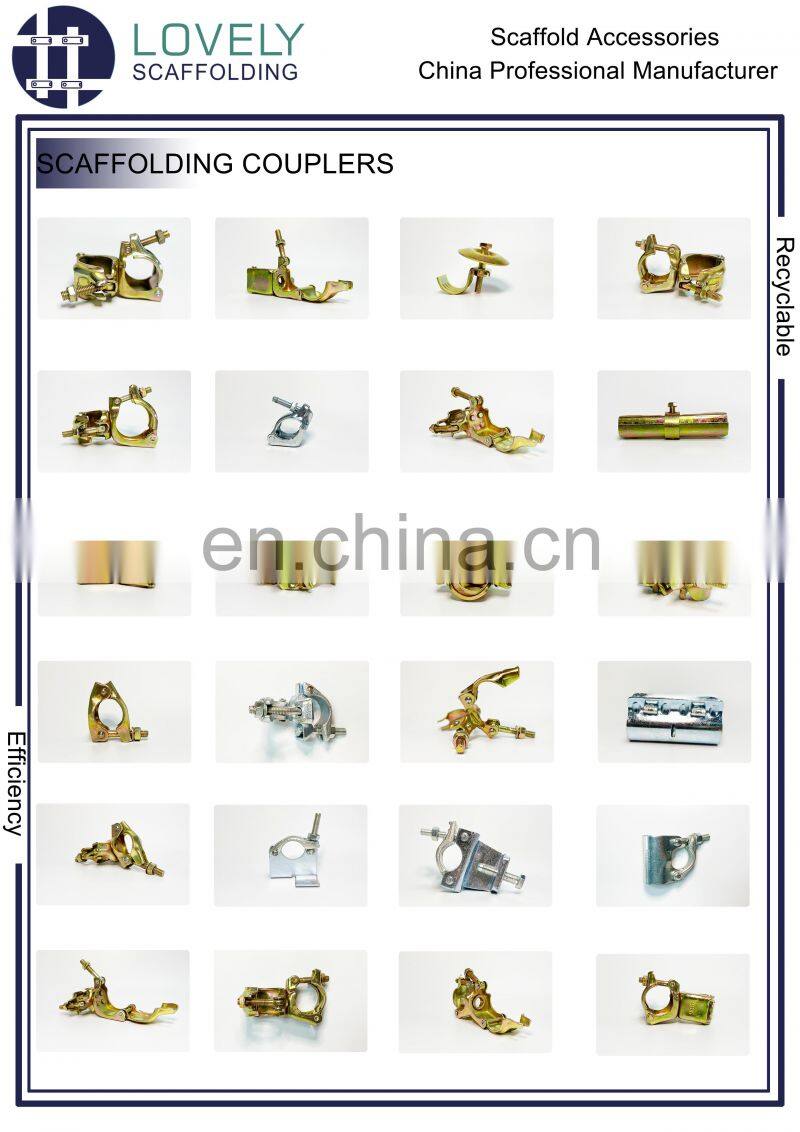 Scaffolding Couplers are used to joint two scaffolding tubes externally one to one. They can be flexibly built in vertical, horizontal and diagonal directions by double coupler, swivel coupler, sleeve coupler etc. Therefore, they can be widely used in formwork scaffold and other shoring systems.