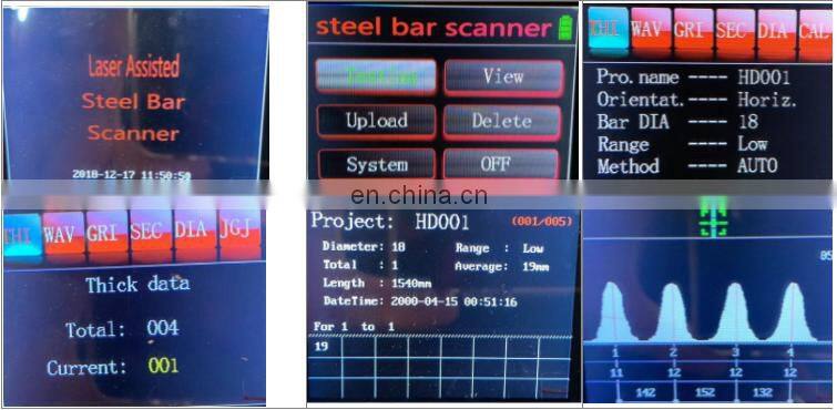 Intuitive display of test results: thickness of protective layer, spacing of steel bars, number of steel bars. Waveform detection can be carried out, which is convenient for analyzing the condition of steel bars. Through the aiming frame, the position of the steel bar and the middle position of the two steel bars can be accurately located. The calibration value is automatically stored, eliminating the need for calibration before each test; in special circumstances, it can be calibrated again.