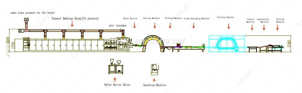 The wafer production line uses a door type sheet cooling machine, which has the characteristics of aesthetics, increased number of cooling sheets, convenient access for staff, and the addition of a vertical freezer and refrigeration system to better improve the temperature, humidity of wafer biscuits, improving quality and taste of wafer bisuits, kind of standard type of wafering equipment. This production line is suitable for small and medium-sized enterprises, independent vendors, and new developers who have certain requirements for production. Investors can also choose according to their own sales and production requirements
