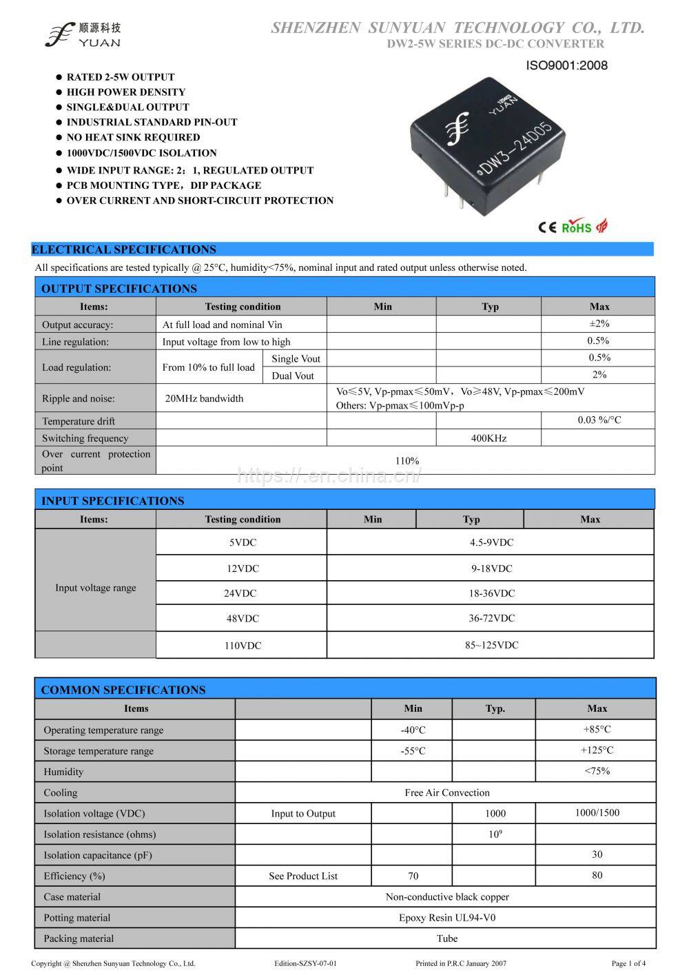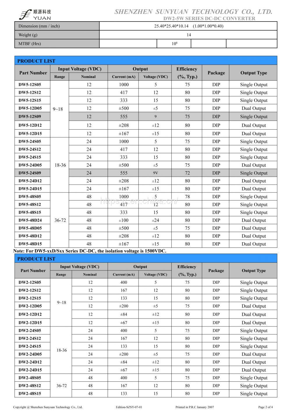 | Model Number | DW5-24S05 | Type | DC/DC Converters | |
