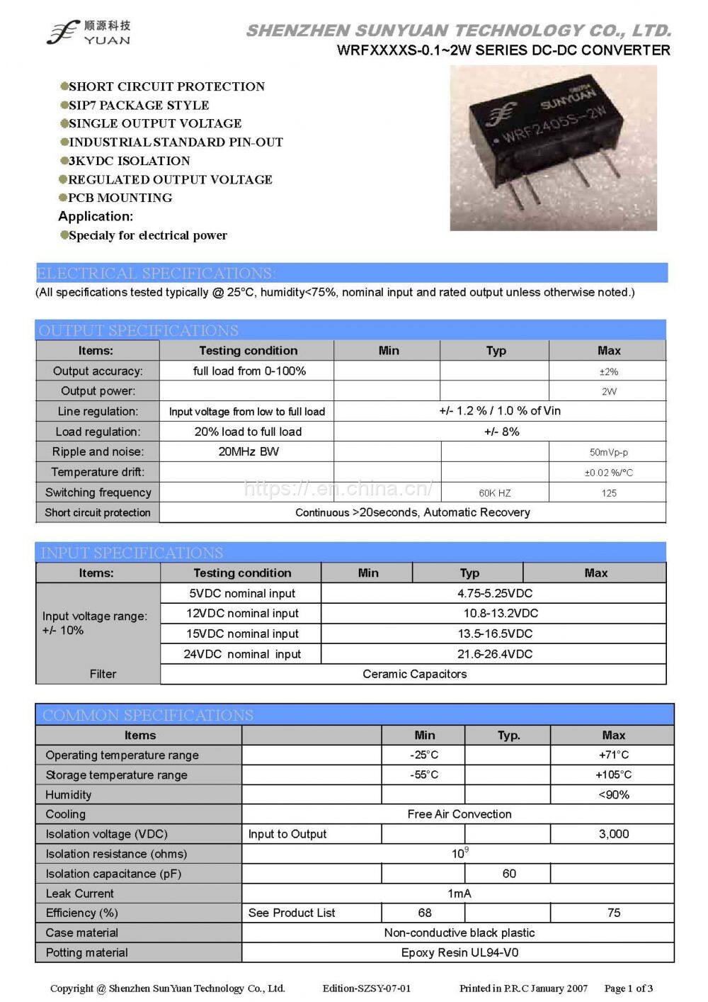 WRFxxxxxH Series DC DC Converter Features: