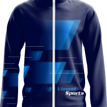 Custom Sublimation Jacket of Black and Blue Colors With White Zipper From China