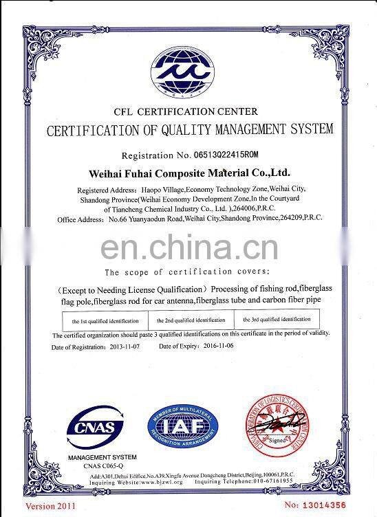 Weihai Fuhai Composite Material Co,Ltd specializes in producing all kinds of fiberglass antenna rod for car and have more than ten years` production history.Our products have been widely sold in European and American countries and widely used in the radio of Citroen,Fiat,Peugeot,Toyota, Ford for FM and AM. Moreover, we occupy more than one sixth of the European market share in the car radio antenna rod.