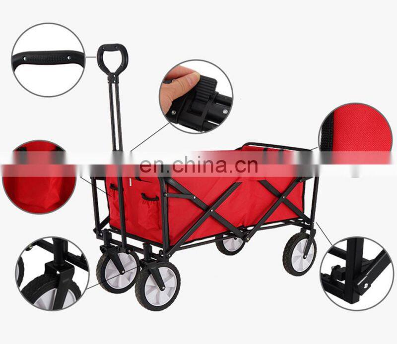Multipurpose Outdoor Foldable Utility Beach Trolley Cart Beach Wagon 4 Wheels Garden Wagon Cart