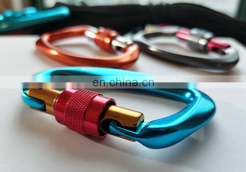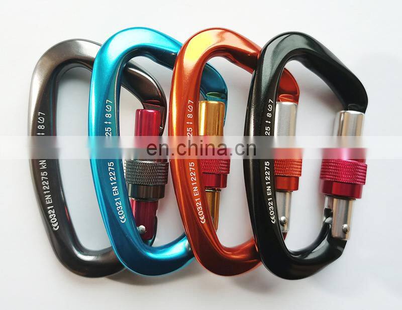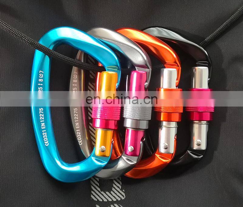 Wholesale Good Quality D Shape Lightweight Aluminum Climbing Carabiner With Snap Lock Aluminium Metal Mini Screw Lock Rock Climb