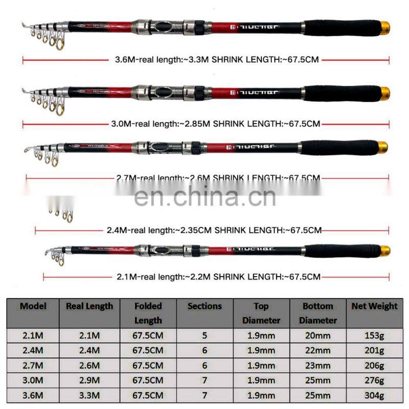Cheap Price 2.1m/2.4m/2.7m/3.0m/3.6m Sea Carbon Fiber Reel Fly Fishing Rods Blank Carp Rod Pole Fishing Rod Telescopic