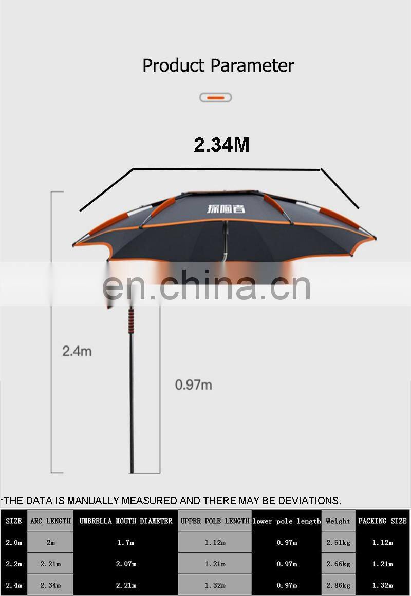 Outdoor 2.0m 2.2m 2.4m Fishing Umbrella Protection Double Layer Outdoor Windproof Fishing Beach Sun Protection Umbrella