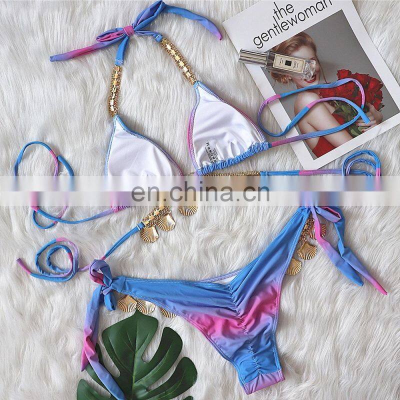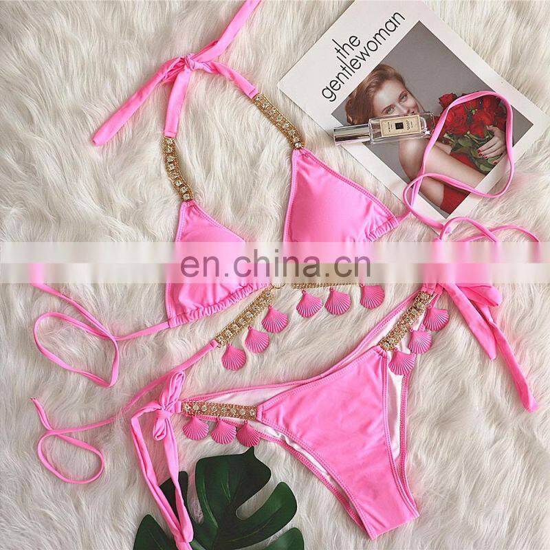 2022 New Design Bikinis Woman Rhinestones Halter Neck Bathing Suits Swim Bikini Women Swimwear