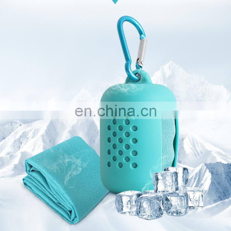 Sports Instant Cooling Towel Logo Custom Microfiber Ice Cooling Towel With Silicon Case