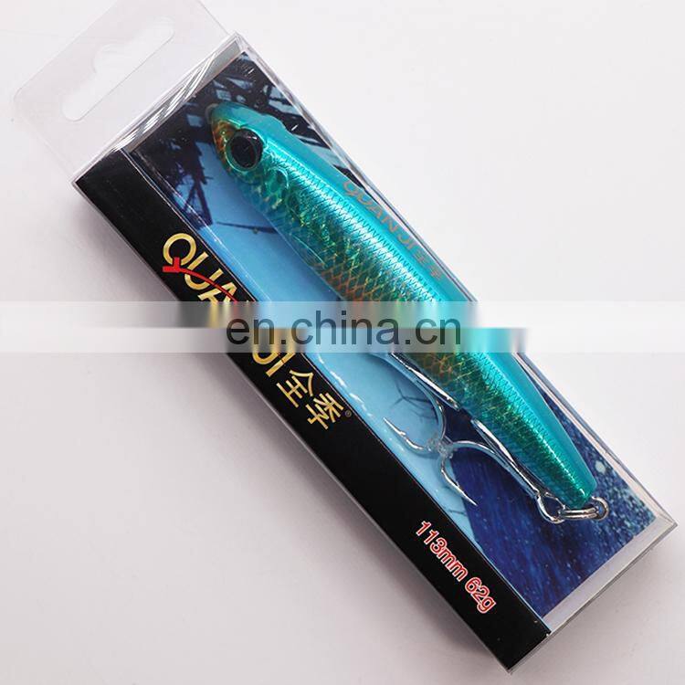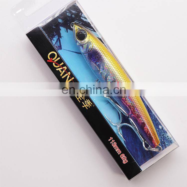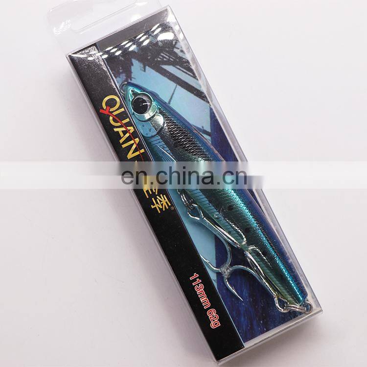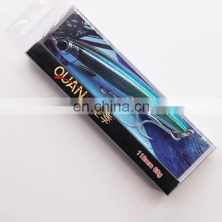 QUAN JI sinking pencil 113MM 62G Fishing Bait Lure Hooks Artificial Hard Minnow Fishing Lures