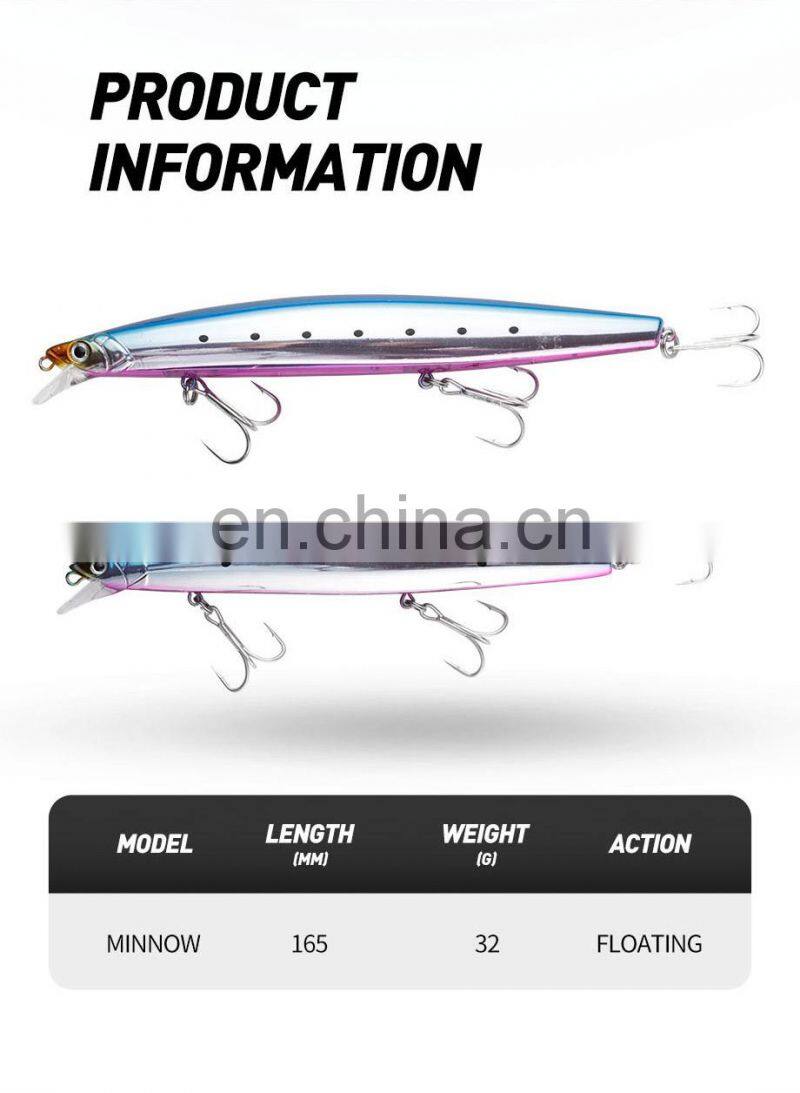 JOHNCOO Floating Minnow 160F Ultra-long Casting Seabass Fishing Lure STINGER 165mm 32g Sea Fishing Haed Baits