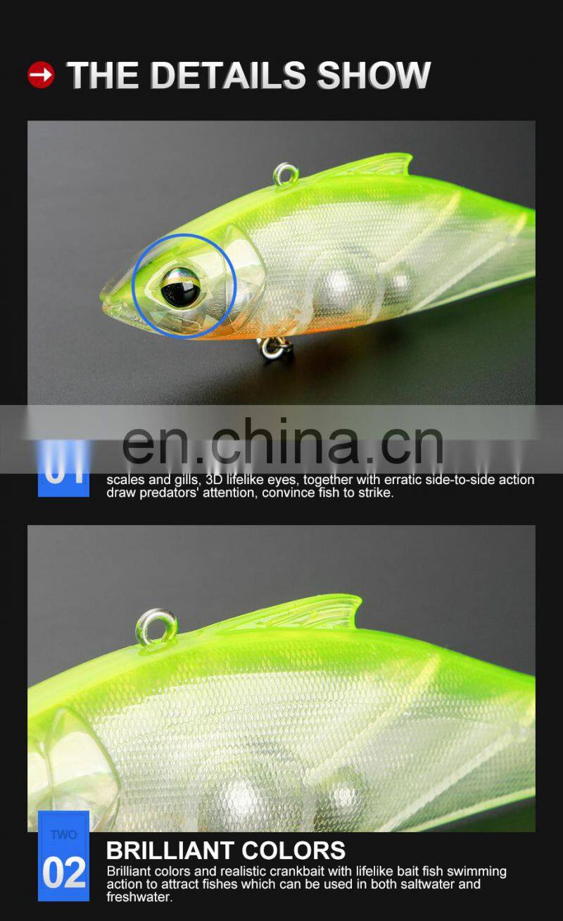 JOHNCOO 72mm Fishing Lure Floating VIB Vibration 10.5g Hard Bait Wobblers Fishing Swimbait For Bass Pike Perch Fishing