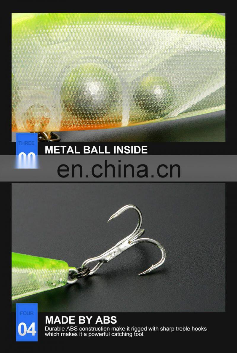 4.MADE BY ABS:Durable ABS construction make it rigged with sharp treble hooks which makes it a powerful catching tool.