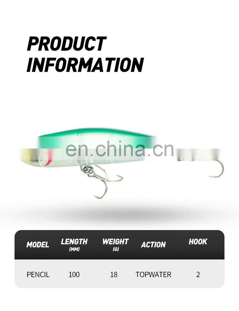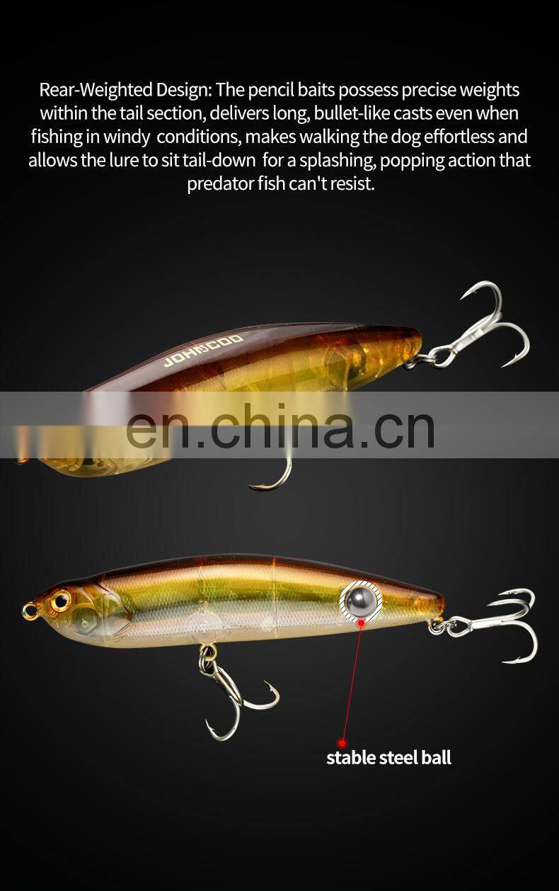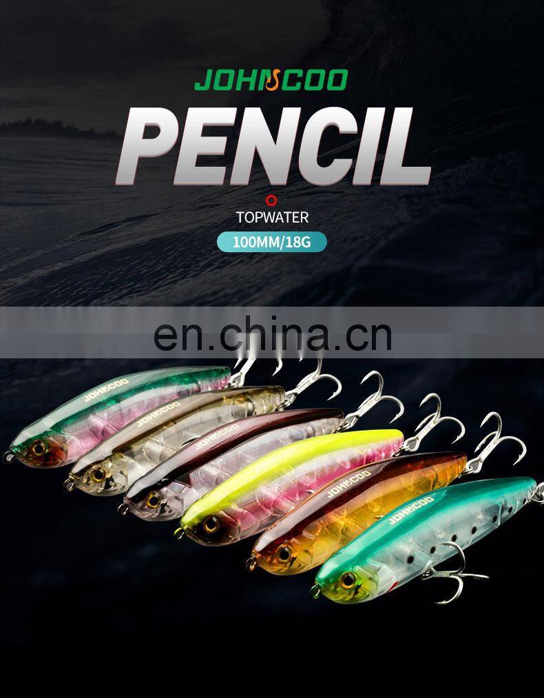JOHNCOO Pencil Fishing Lures Topwater Wobblers 100mm 18g Surface Walk The Dog Bass Pike Sparrow Hard Bait WTD Popper
