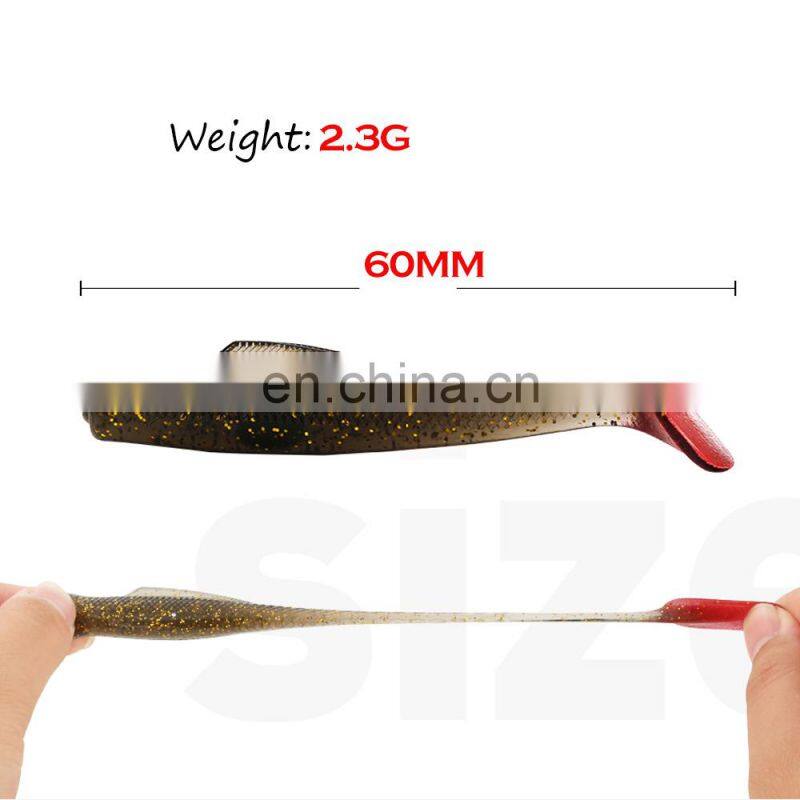 JOHNCOO 5.5CM 1.6G TPE Material Soft Bait Paddle T Tail Fishing Lure 6pcs/bag