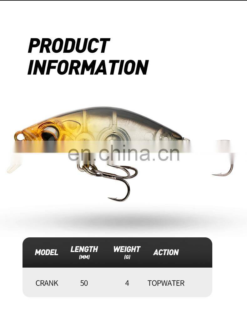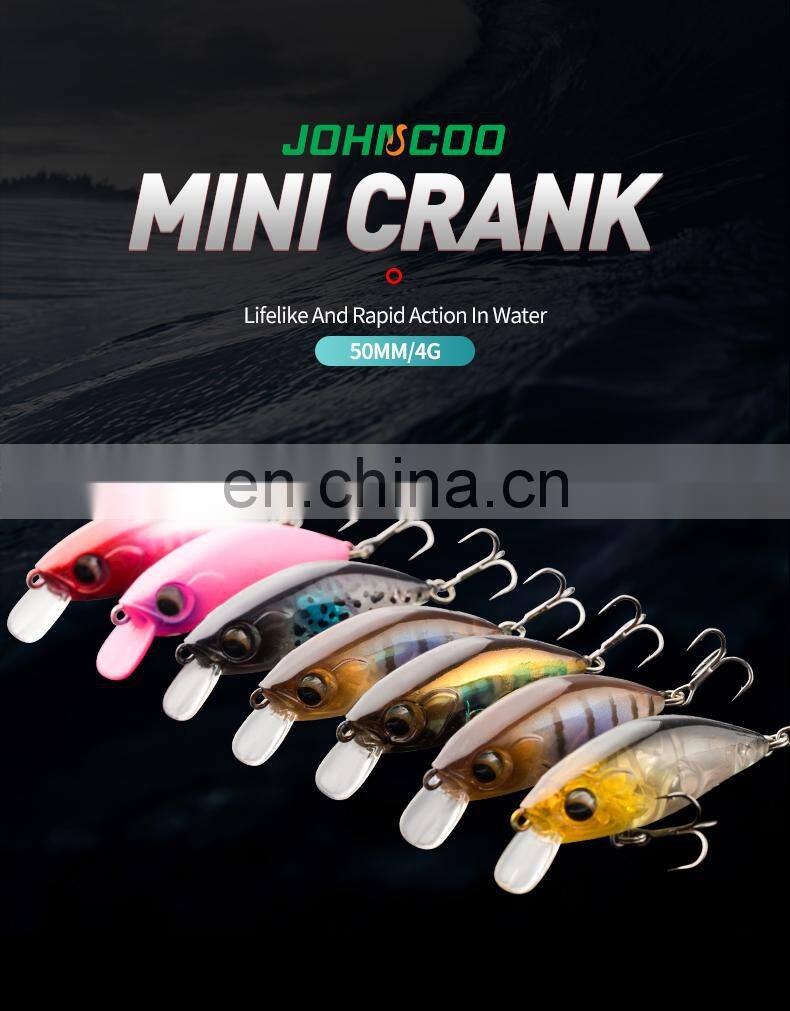 JOHNCOO Hard Bait 50mm 4g Artificial Fishing Bait Lifelike Rapid Action in Water Mini Crank Fishing Lures