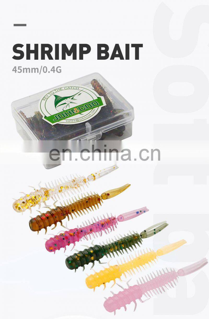 JOHNCOO 45mm 0.4g 50pcs Shrimp Bait Ocean Rock Lure Bass Swim Soft Worm Fishing Lure