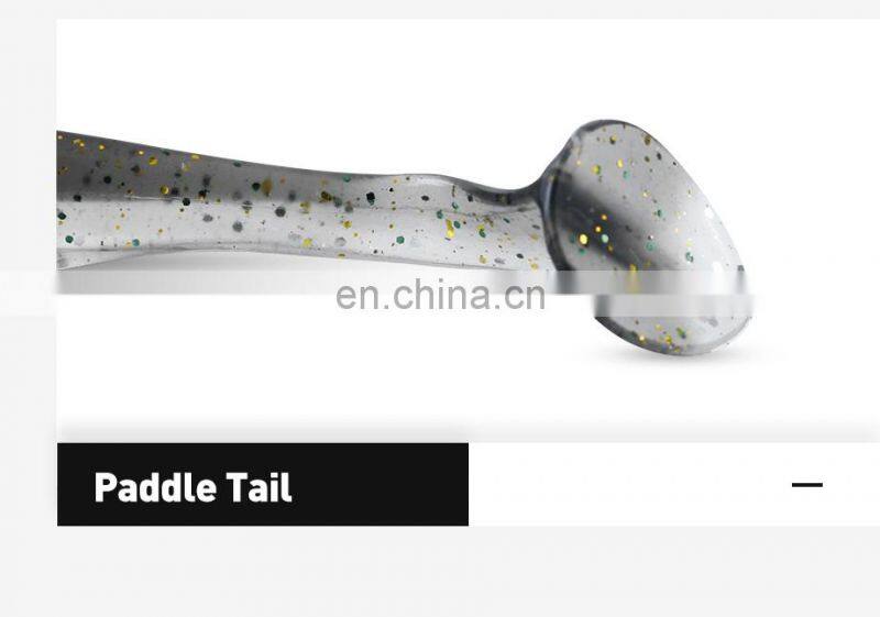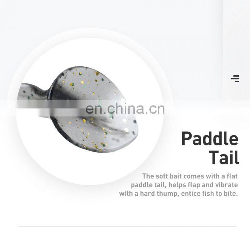 3.Paddle Tail: The soft bait comes with a flat paddle tail, helps flap and vibrate with a hard thump, entice fish to bite.
