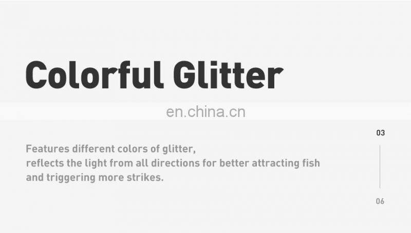 5.Colorful Glitter: Features different colors of glitter, reflects the light from all directions for better attracting fish and triggering more strikes.