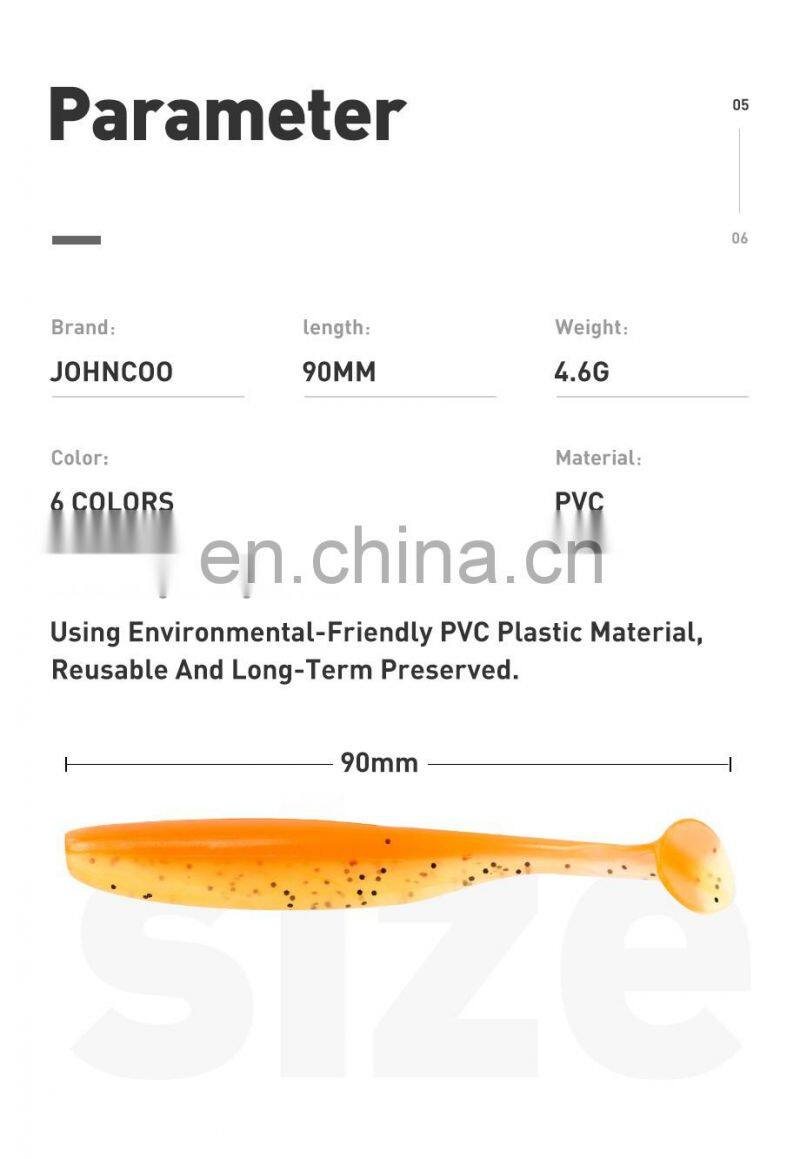 JOHNCOO 6pcs 90mm 4.6g Soft Bait Shad Silicone Lure T-Tail Fishing Lure Easy Shiner Swimbait Artificial Wobblers Bass Pike Lure