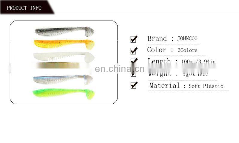 Home > Products > Fishing Lure > JOHNCOO 10cm 5g In Stock Fishing Tackle Double Color T Tail Soft Plastic Shad Worm Soft Plastic Lure 5pcs/bag