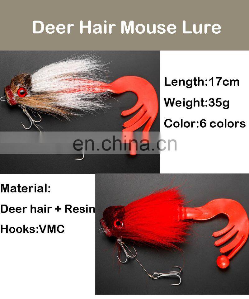 JOHNCOO New Fly Fishing 35g 17cm Deer Hair Material Big Mouse Resin Bait Trout Pike Fishing Lure