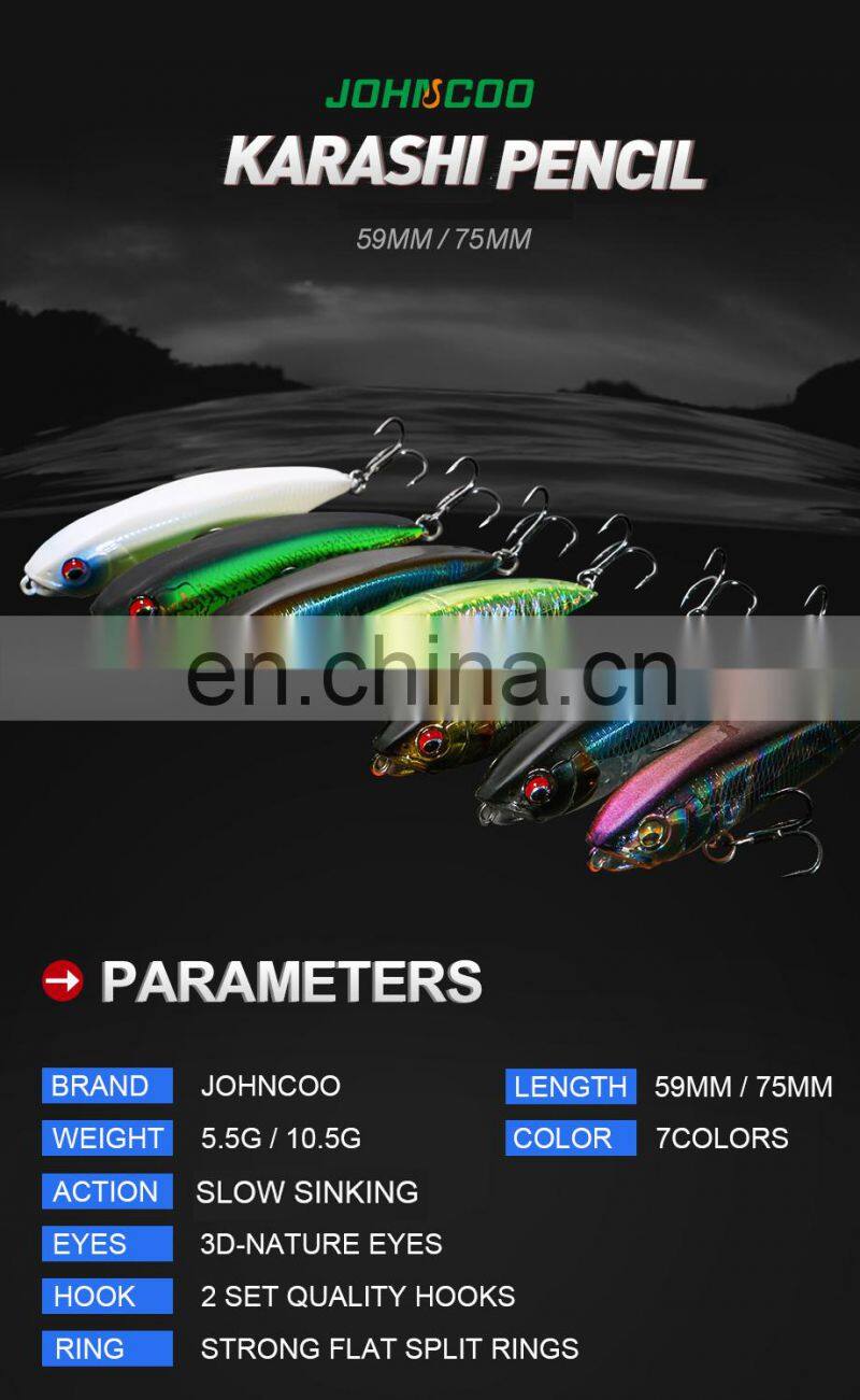 JOHNCOO 59mm 75mm Slow Sinking Pencil Lure Like Living Fish Swimming Pencil Baits Hard Bass Stock Fishing Lure