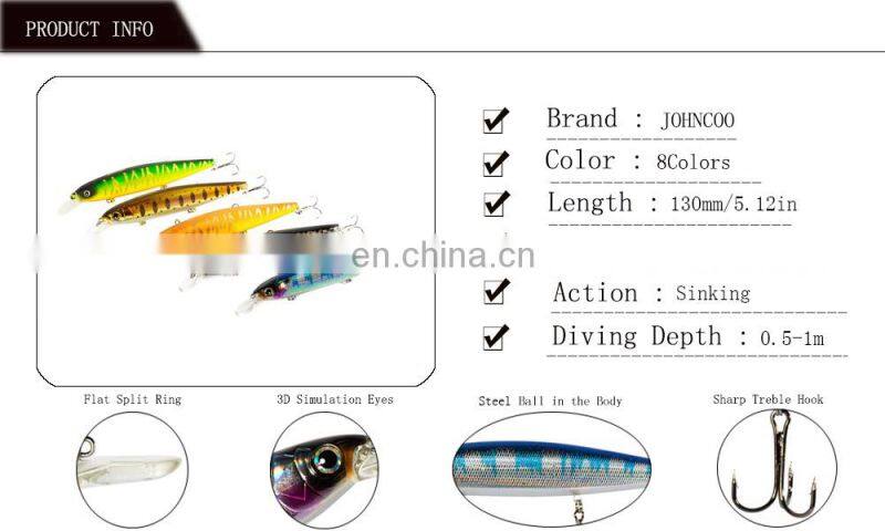 JOHNCOO 130SP Minnow Hard Fishing Lure 130mm 25g Wobbler Treble Hooks Hard Baits Hard Bait Minnow