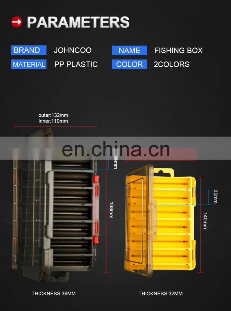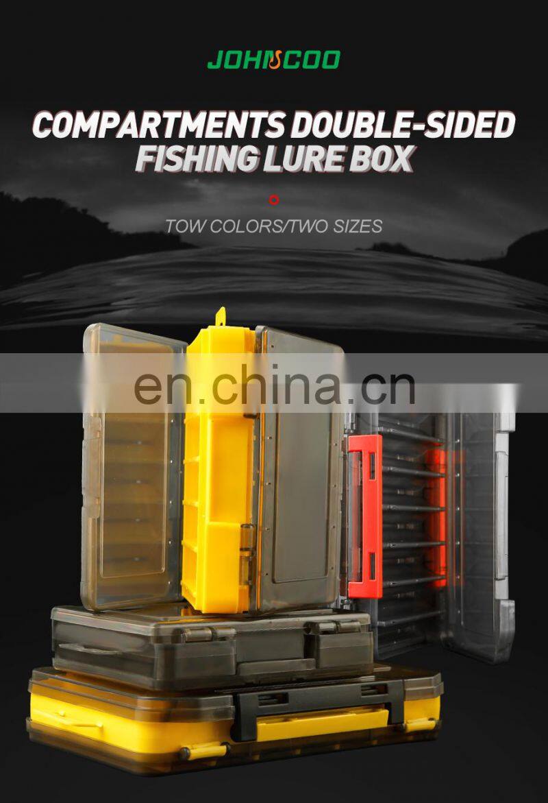 JOHNCOO Amazon Hot Selling Waterproof Double Sided Visible 14 Compartments Hard Fishing Tackle Container Fishing Lure Box