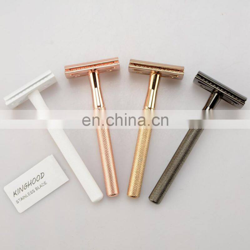 Kinghood Metal Matte Rose Gold Stainless Steel Custom Double Edge Safety Shaving Razor For Men