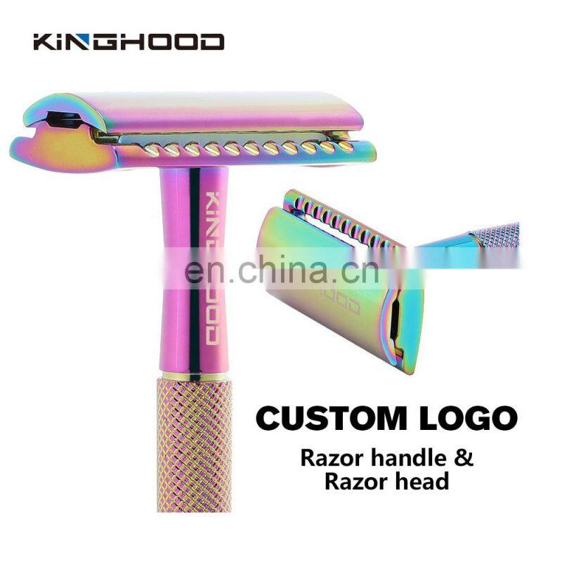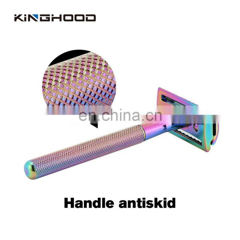 Home > Products > Safety razor > Kinghood Rainbow Metal Men Shaving Razor Custom Logo