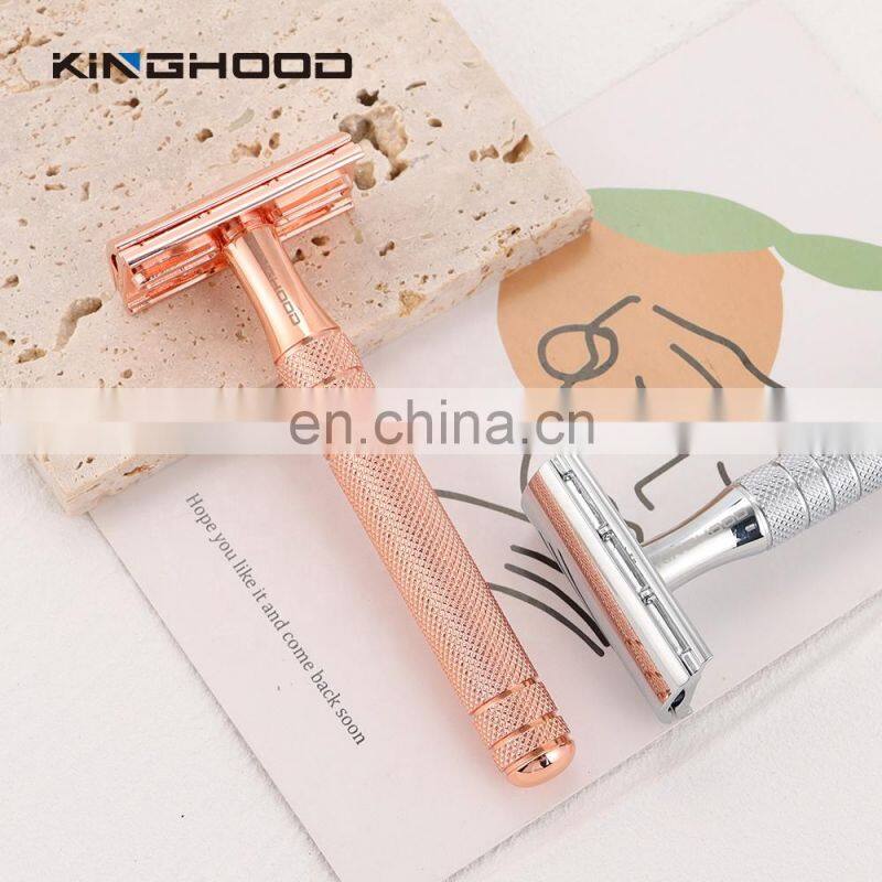 Aluminium Handle Razors Body Rose Gold Safety Razor Stainless Steel For Women