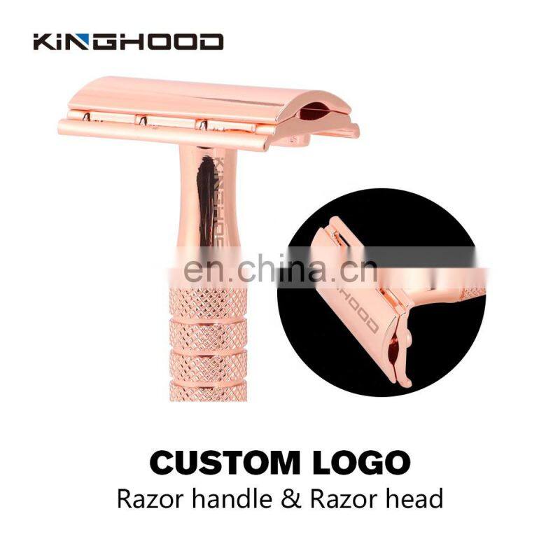 Custom Oem Reusable Metal Handle Rose Gold Shaving Double Edge Safety Razor For Women