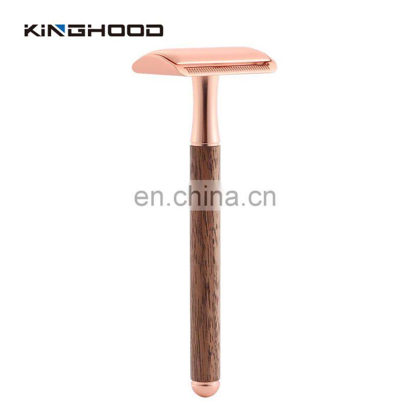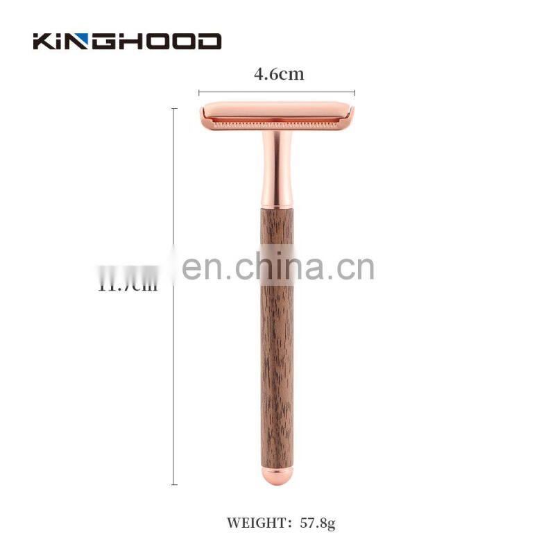 Rose Gold Double Edge Shaving Safety Razors Walnut Wood Shaving Safety Shaver