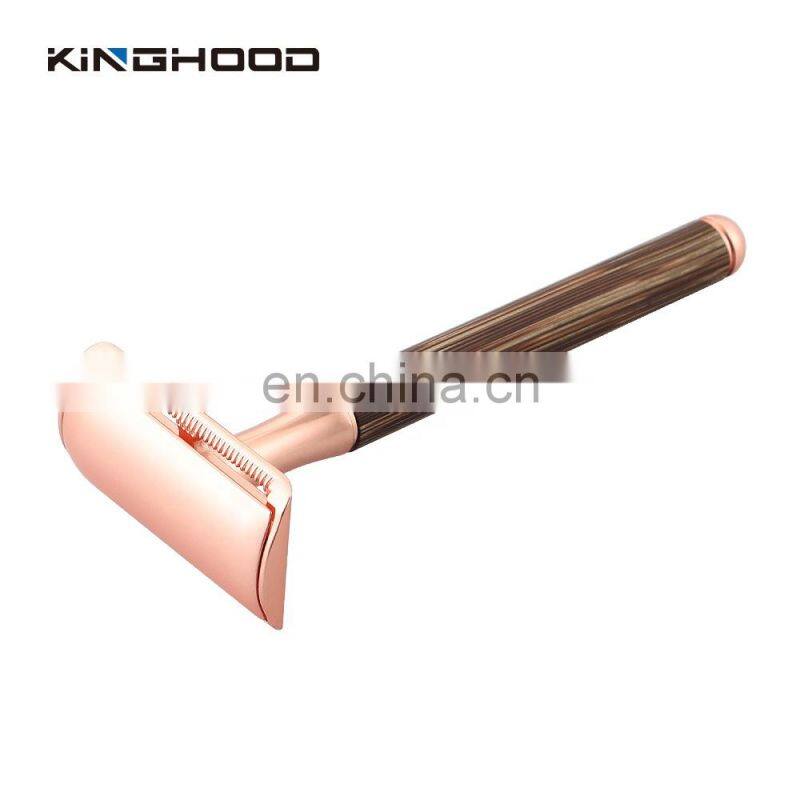 Rose Gold Women Razor Bamboo Wooden Handle Feature Blade Twin Razor