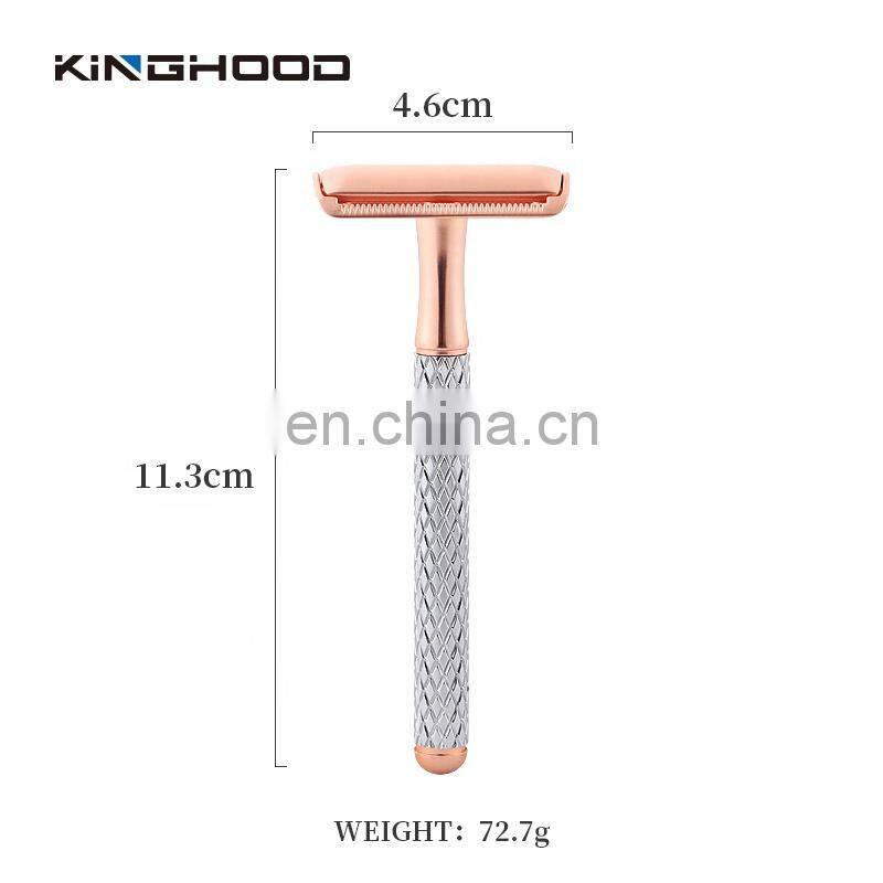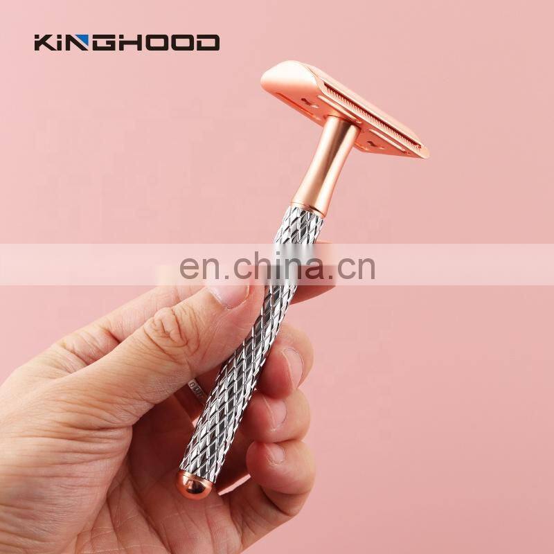 Classical Safety Razor 3 Piece Metal Handle Rose Color Razor Double Edge Blade Razor