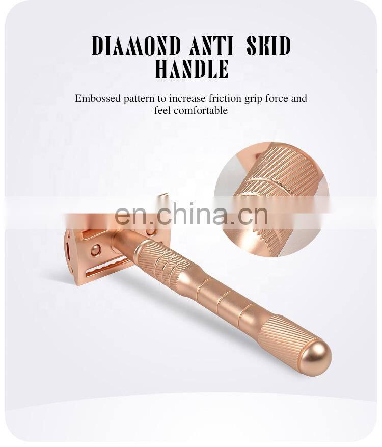 Custom Luxury Eco Friendly Zero Waste Reusable Double Edge Shaving Gold Extension Handle Safety Razor