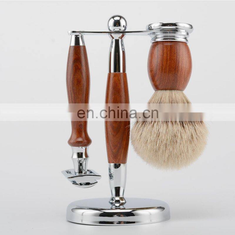 Sandal Wood Eco Friendly Safety Razor And Badger Hair Brush Shaving Razor Set