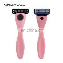 Reusable Metal Handle Pink Manual Face Customized 4 or 6 Blades Shaving Safety Razor