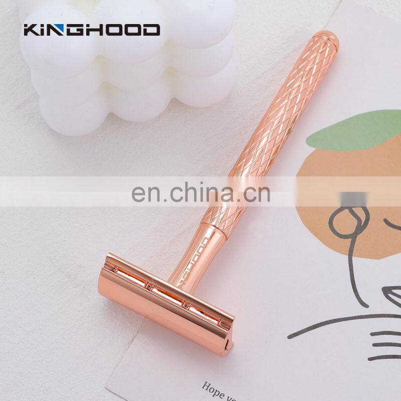New Style Metal Rose Gold Color Double Edge Razor Blade Shave Shaving Razor For Women