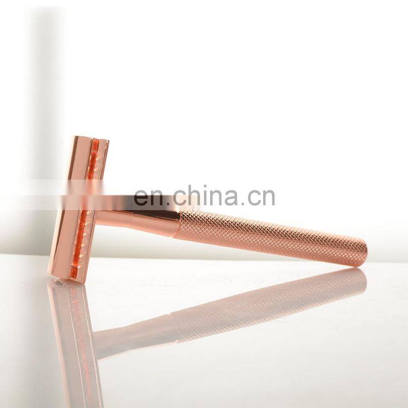 Rose Gold Customized Lady Body Double Edge Blade Safety Razor Male Portable Face Metal Shaver