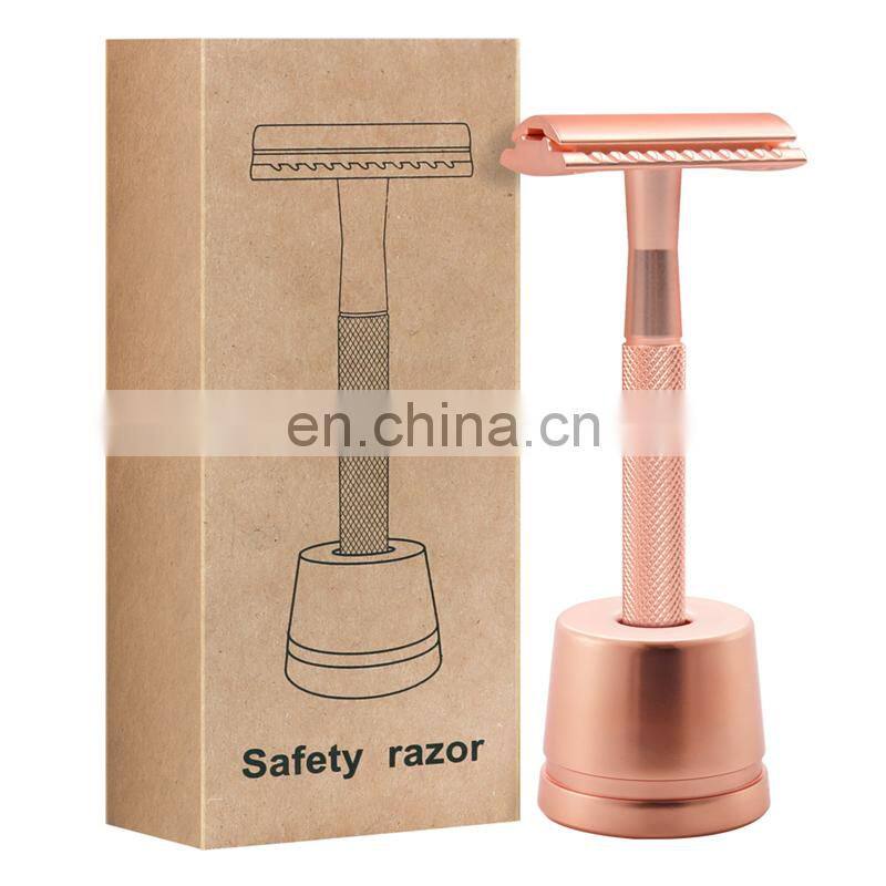 Rose Gold Customized Lady Body Double Edge Blade Safety Razor Male Portable Face Metal Shaver