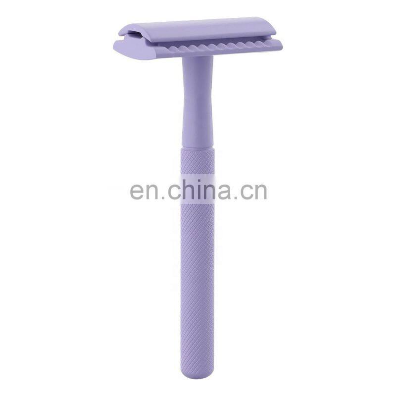 Wholesale Matte Rose Gold Green Pink Purple Eco-friendly Reusable Metal Razor Double Edge Shaving Safety Razor For Women