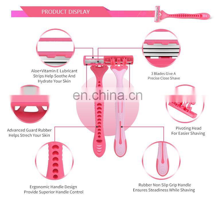 3PCS/Pack Disposable Women Razor Stainless Steel Triple Blade Female Hair Remove Safety Razor Customize Logo Bikini Razor KL3-06